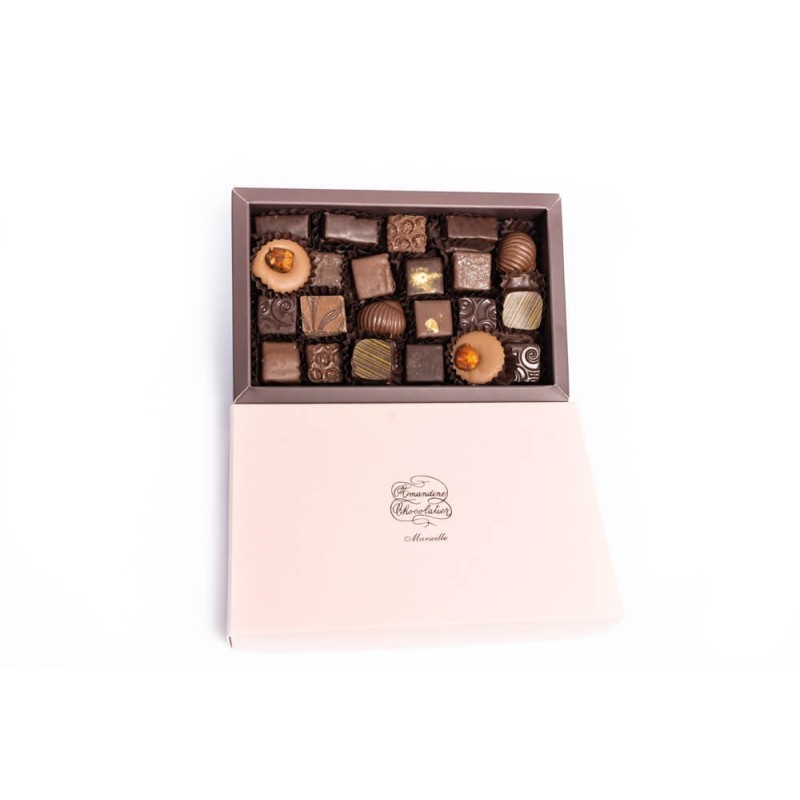Découvrez les coffrets de chocolat noir et au lait réalisés par nos soins.